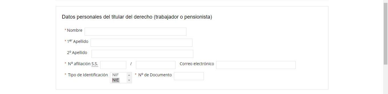 - Una vez allí, se muestra en la pantalla el formulario, que debe llenar el usuario con los datos que se solicitan. El primero de ellos, es el tipo de solicitud; en el cual, se debe seleccionar la opción que represente al o a los solicitantes. En ese sentido, puede ser el titular, sus beneficiarios o ambos.
